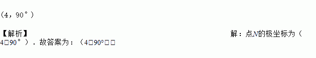 (永定县校级月考)在平面内取一个定点O,叫极点,引一条射线Ox,叫做极轴,再选定一个长度单位和角度的正方向(通常取逆时针方向).对于平面内任何一点M,用ρ表示线段OM的长度,θ表示从Ox到OM的角度,ρ叫做点M的极径,θ叫做点M的极角,有序数对(ρ,θ)就叫点M的极坐标,若ON⊥Ox,且点N到极点O的距离为4个单位长度,则点N的极坐标可表示为__________.