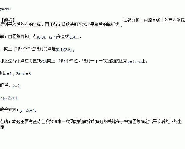 如图,将直线OA向上平移1个单位,得到一个一次函数的图象,那么这个一次函数的关系式是_______.