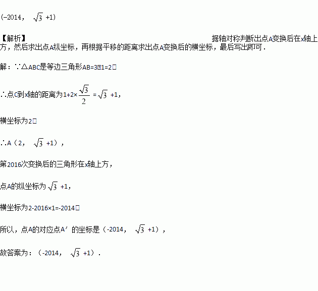 (2016·黑龙江龙东)如图,等边三角形的顶点A(1,1)、B(3,1),规定把等边△ABC“先沿x轴翻折,再向左平移1个单位”为一次変换,如果这样连续经过2016次变换后,等边△ABC的顶点C的坐标为__.