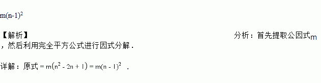 分解因式:mn2-2mn+m=_________.