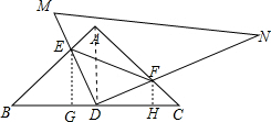 分析:(1)连接AD,由于△ABC是等腰直角三角形,根据等腰直角三角形的性质得∠B=∠C=45°,∠EAD=45°,AD=DC,AD⊥BC,利用“AAS”易证得△EDA≌△FDC,则ED=FD,于是可判断△DEF一定为等腰直角三角形;