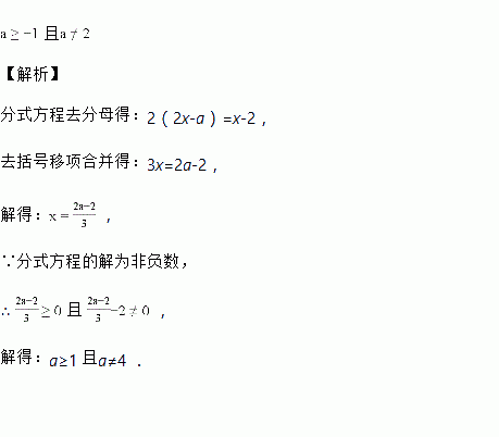 若关于 x 的分式方程的解为非负数,则 a 的取值范围是______.