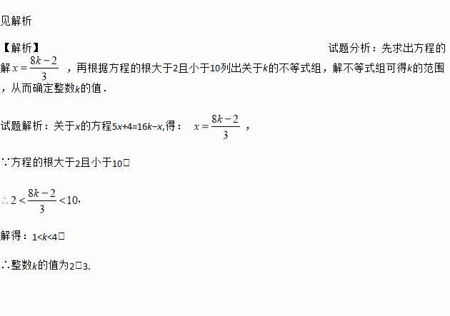 k取哪些整数时,关于x的方程5x+4=16k-x的根大于2且小于10?