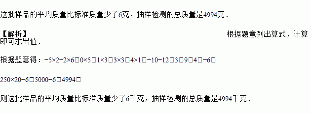 这批样品的平均质量比标准质量多还是少?多或少几克,若标准质量为 250 克,则抽样检测的总质量是多少?