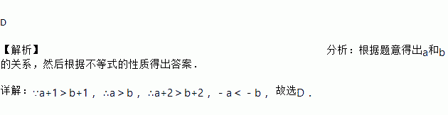 A. a>b B. a+2>b+2 C. –a<–b D. 2a>3b