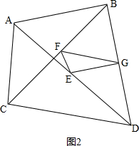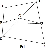 解答 解:如图1、图2,G是BD的中点,连接EG、FG,