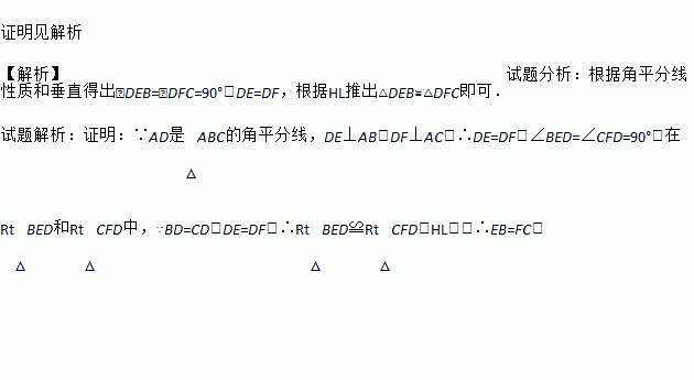 已知:如图,AD 是△ABC的角平分线,BD=CD,DE⊥AB 于E,DF⊥AC于F.求证:EB=FC.