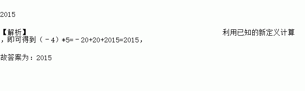 2015 【解析】利用已知的新定义计算,即可得到(﹣4)*5=﹣20+20+2015=2015, 故答案为:2015