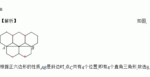 如图是由5个形状、大小完全相同的正六边形组成的图案,我们把正六边形的顶点称为格点.若Rt△ABC的顶点都在格点上,且AB为Rt△ABC的斜边,则Rt△ABC的个数有( )