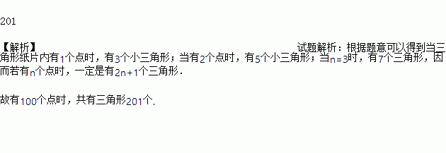 三角形纸片上有100个点,连同三角形的顶点共103个点,其中任意三点都不共线.现以这些点为顶点作三角形,并把纸片剪成小三角形,则这样的三角形共有_______个.