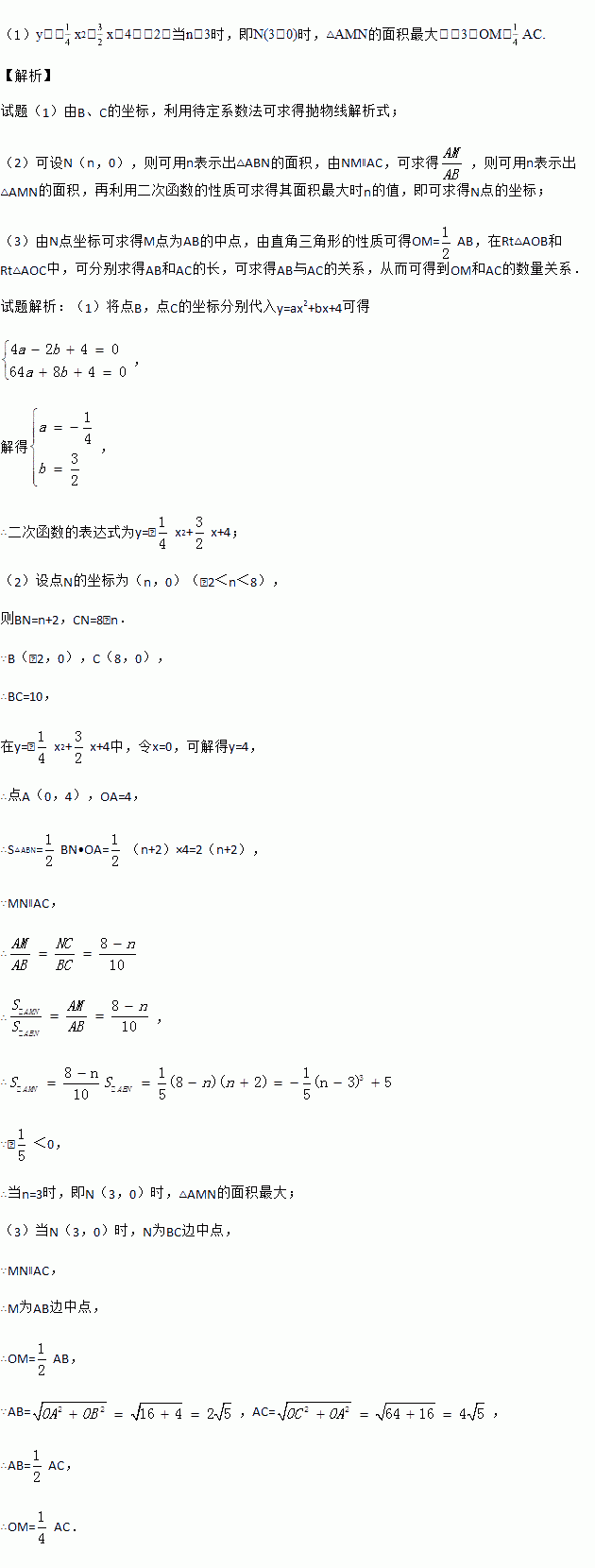 (2)连接AC,AB,若点N在线段BC上运动(不与点B,C重合),过点N作NM∥AC,交AB于点M,当△AMN面积最大时,求N点的坐标;
