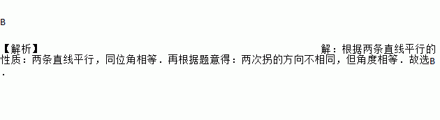 一辆汽车在笔直的公路上行驶,两次拐弯后,仍在原来的方向上平行前进,那么两次拐弯的角度是( )