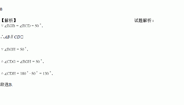 如图,已知直线AB、CD被EF所截,GH交CD于D,∠EGB=∠BGH=∠ECD=50°,则∠CDH为( )