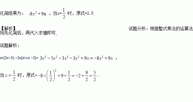 求值:x2(3x?5) ?3 x(x2+x ?3),其中x=