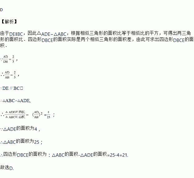 如图,中,,若,若的面积为,则四边形的面积为( )