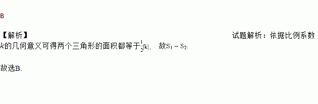 B 【解析】试题解析:依据比例系数k的几何意义可得两个三角形的面积都等于 故 故选B.