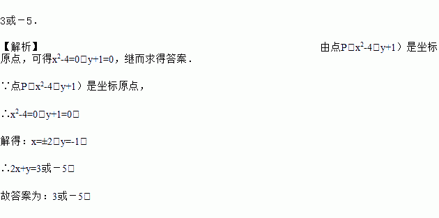 如果点P(x2-4,y+1)是坐标原点,那么2x+y=______