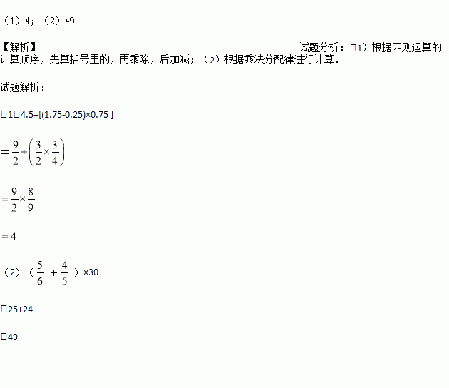 (1)4.5÷[(1.75-0.25)×0.75 ]
