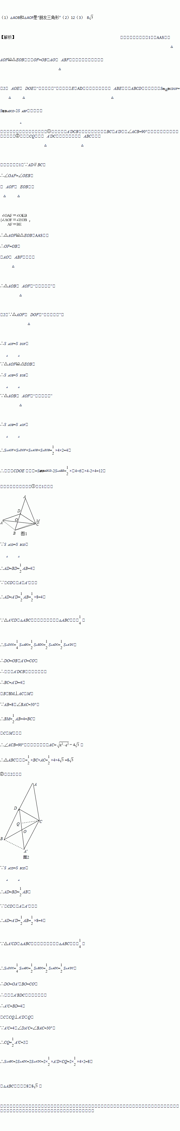 (1)求证:△AOB和△AOF是“朋友三角形”;