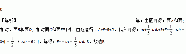 如图,是一个正方体的平面展开图,且相对两个面表示的整式的和都相等,如果 ,则E所代表的整式是( )