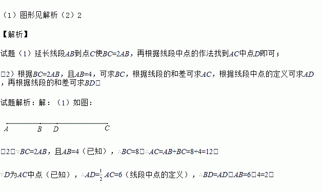 (1)延长线段AB到点C,使BC=2AB,取AC中点D;