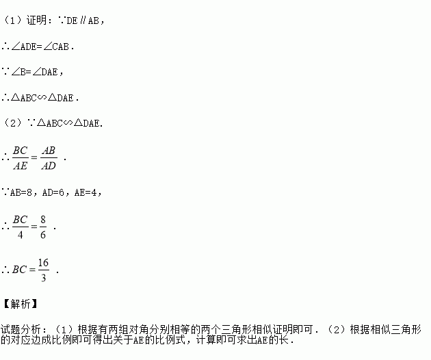 (2)若AB=8,AD=6,AE=4,求BC的长.