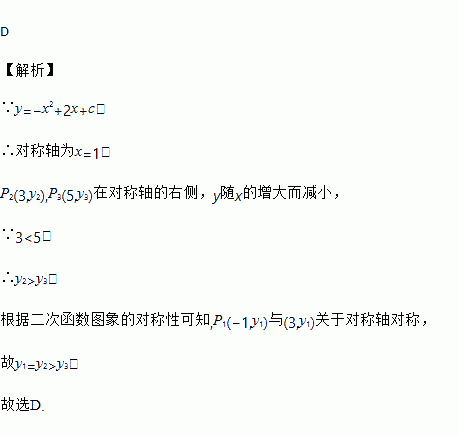 点P1(-1,y1),P2(3,y2),P3(5,y3)均在二次函数y=-x2+2x+c的图象上,则y1,y2,y3的大小关系是( )