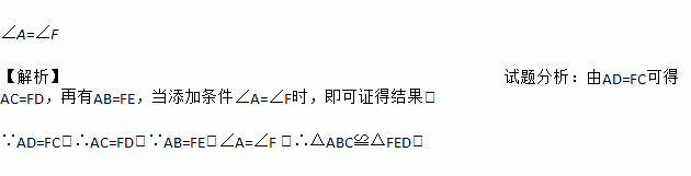 如图,在⊿ABC和⊿FED中,AD=FC,AB=FE,当添加条件______________时,就可以得到⊿ABC≌⊿FED.(只需填写一个你认为正确的条件)