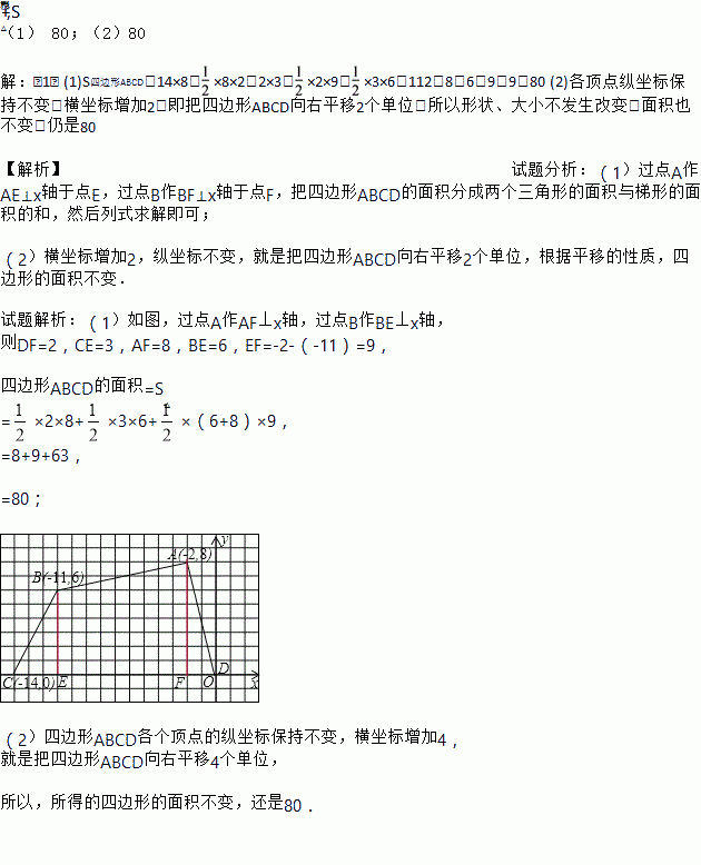 (2)如果把四边形ABCD各顶点纵坐标保持不变,横坐标增加2,所得的四边形面积又是多少?