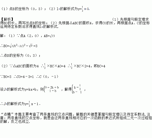 (2)若△ABC的面积为4,求直线l2的解析式.