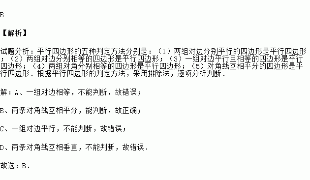 A.一组对边相等 B.两条对角线互相平分