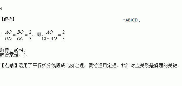 已知AB∥CD,AD与BC相交于点O.若,AD=10,则AO=_____.