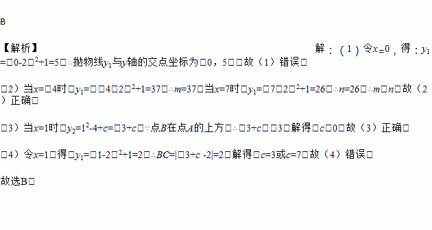 如图,在平面直角坐标系中,抛物线y1=(x-2)2+1与y2=x2-4x+c,过点A(1,-3)作直线l∥y轴,交抛物线y2于点B,交抛物线y1于 点C,则以下结论: