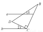 如图,直线a//b,直角三角形如图放置,∠DCB=90°,若∠1+∠B=65°,则∠2的度数为( )