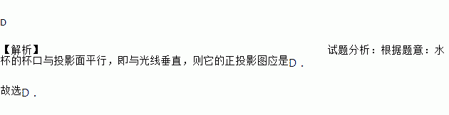 如图(1)所示,水杯的杯口与投影面平行,投影线的方向如箭头所示,它的正投影是图(2)中的( )