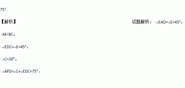 将一副学生用三角板按如图所示的方式放置.若AE∥BC,则∠AFD的度数是 _________.