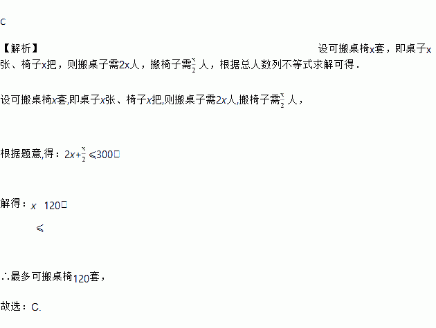 某单位为一中学捐赠了一批新桌椅,学校组织七年级300名学生搬桌椅,规定一人一次搬两把椅子,两人一次搬一张桌子,每人限搬一次,最多可搬桌椅(一桌一椅为一套)的套数为( )