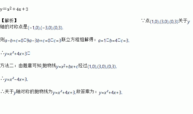 抛物线y=ax2+bx+c的图象如图所示,则它关于y轴对称的抛物线的解析式是____.
