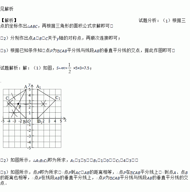 (2) 在图形中作出△ABC关于y轴的对称图形△A1B1C1,并写出A1、B1、C1的坐标