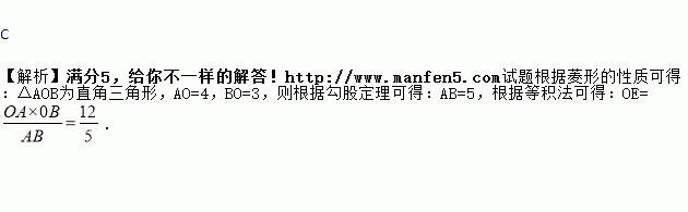 如图,菱形ABCD中对角线相交于点O,且OE⊥AB,若AC=8,BD=6,则OE的长是( )
