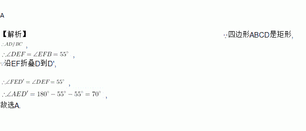 如图,把一个长方形纸片沿EF折叠后,点D,C分别落在D′,C′的位置,若∠EFB=55°,则∠AED′=( )