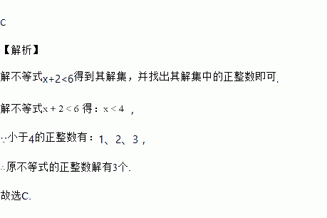 不等式x+2<6的正整数解有 ( )