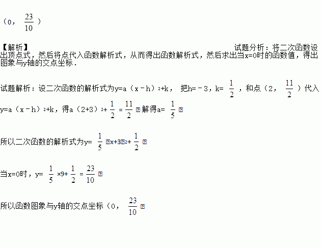 已知二次函数图象顶点坐标(﹣3, )且图象过点(2, ),求二次函数解析式及图象与y轴的交点坐标.