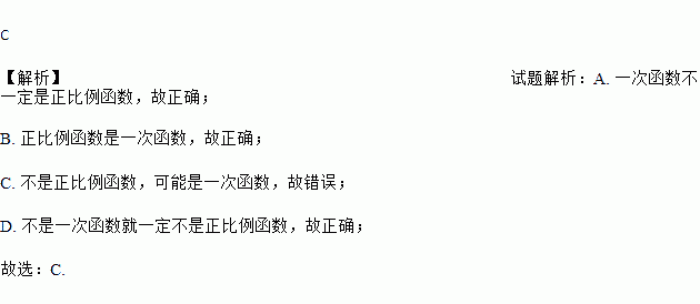 C. 不是正比例函数就不是一次函数 D. 不是一次函数就不是正比例函数