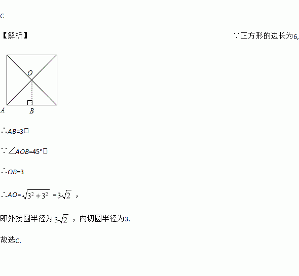 若正方形的边长为6,则其外接圆半径与内切圆半径的大小分别为( )