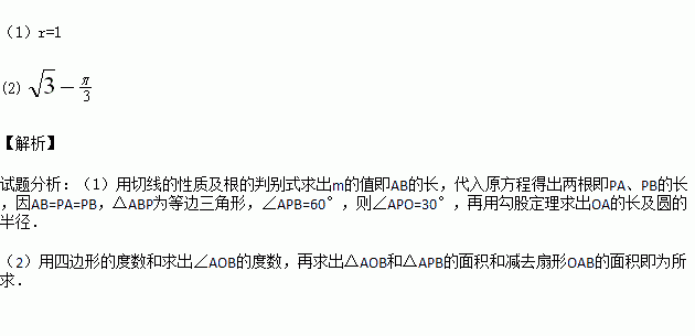 如图,已知PA、PB切⊙O于A、B两点,连AB,且PA,PB的长是方程