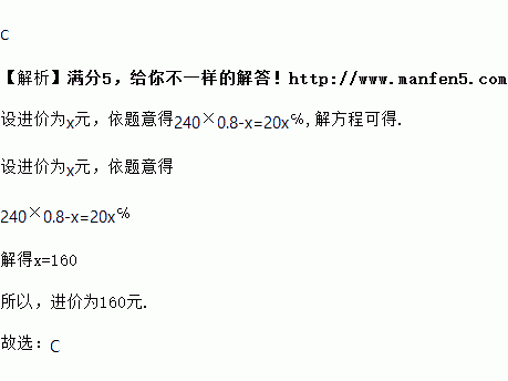 某种计算器标价240元,若以8折优惠销售,仍可获利20%,那么这种计算器的进价为( )