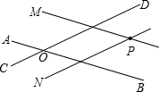 平面内两条直线AB、CD交于点O,过点P作直线PM∥AB,PN∥CD.