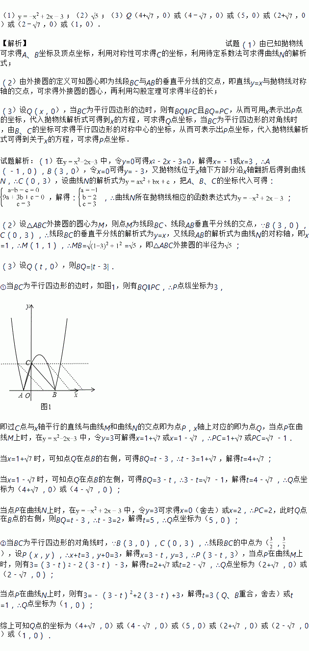 (3)点P为曲线M或曲线N上的一动点,点Q为x轴上的一个动点,若以点B,C,P,Q为顶点的四边形是平行四边形,求点Q的坐标.