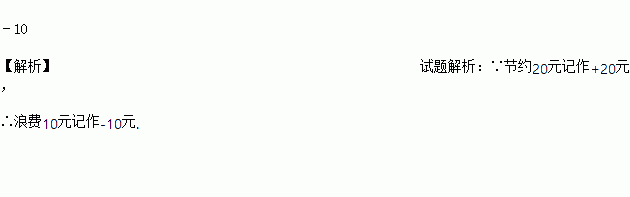 如果节约20元记作+20元,那么浪费10元记作_________元.